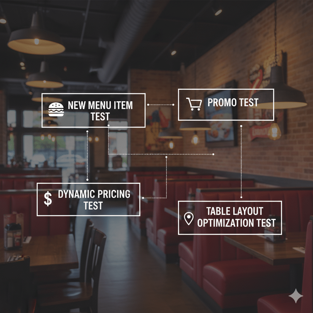 Test restaurant changes, kiosk placement, and signage with statistically sound control groups across regions.