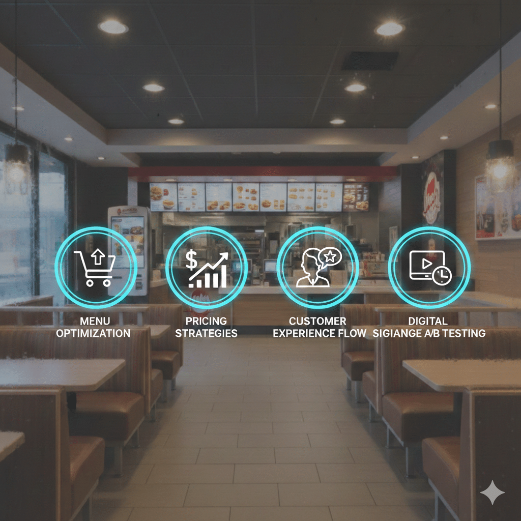 Test restaurant changes, kiosk placement, and signage with statistically sound control groups across regions.